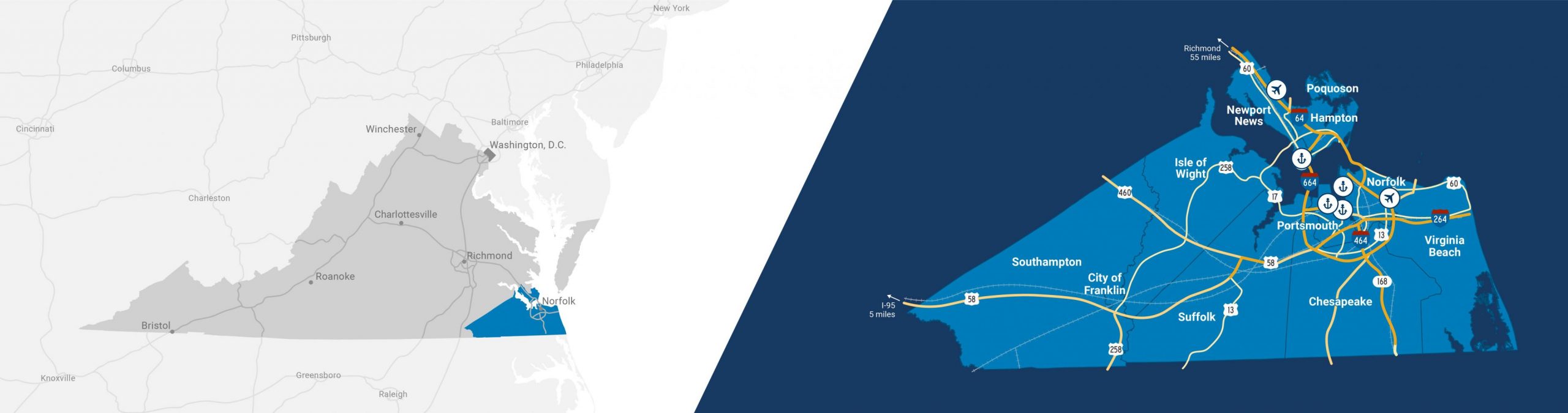 Hampton Roads is a global gateway that offers unparalleled connectivity. The region is home to the two highest capacity (160 terabits/second) transatlantic subsea cables in the world, and the Port of Virginia is one of the Top 6 Most Advanced Ports in the U.S. As both a digital and maritime port, Hampton Roads has the infrastructure in place to support Project Topeka’s requirements.
