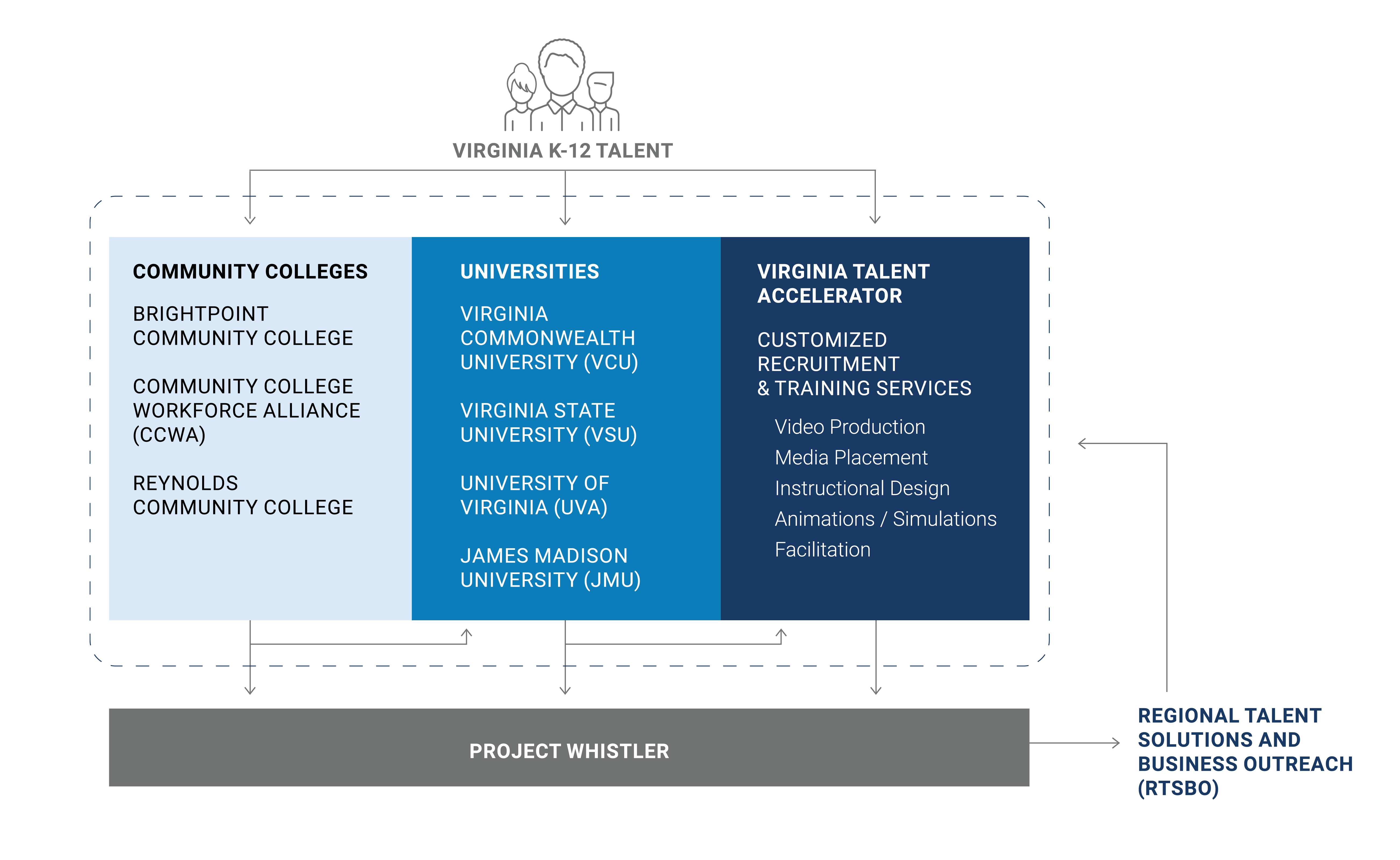 Virginia’s talent ecosystem is enabled by a robust group of education and workforce training partners. Students graduate from the Commonwealth’s highly regarded community colleges and universities with a broad base of subject knowledge, with the best-in-class Virginia Talent Accelerator Program available to deliver a workforce to fulfill a specific company’s needs.