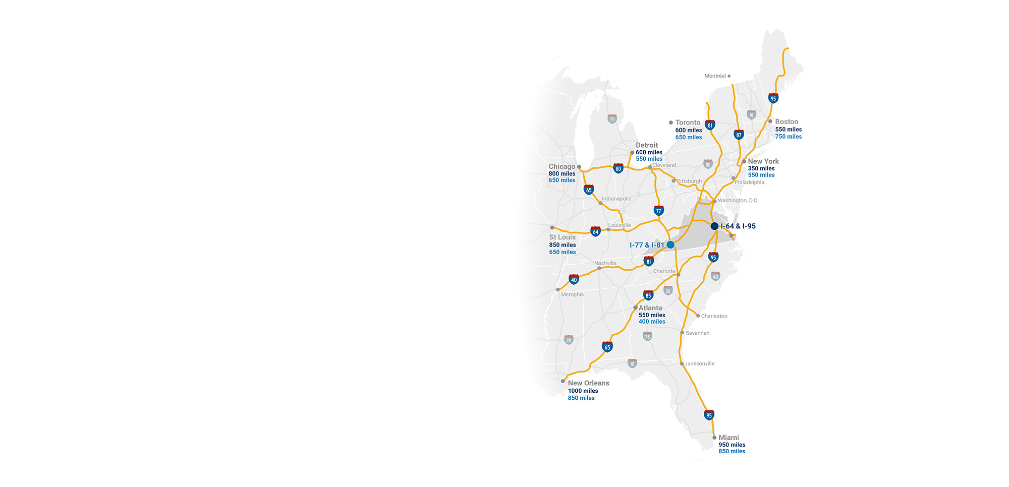 Virginia’s central location provides access to major hubs of economic activity along the Northeast corridor, across the Southeast, and throughout the Midwest. Virginia is also ideally positioned for the export and import of automotive products.